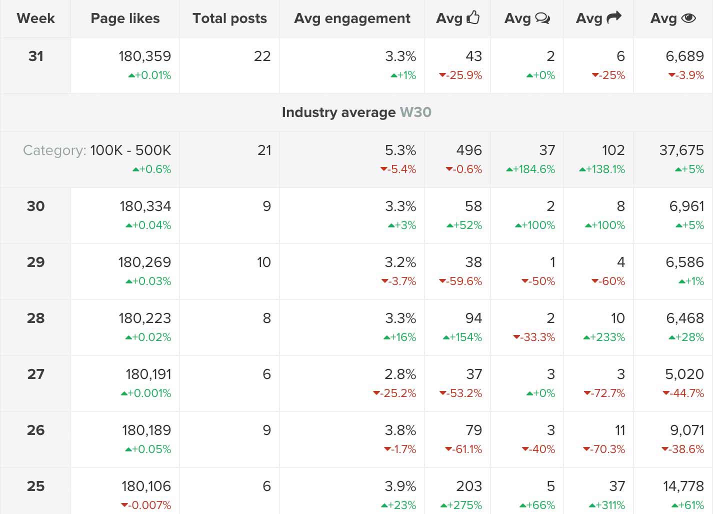 Simple KPI overview with easy comparisons how the industry moves week- or month over month.